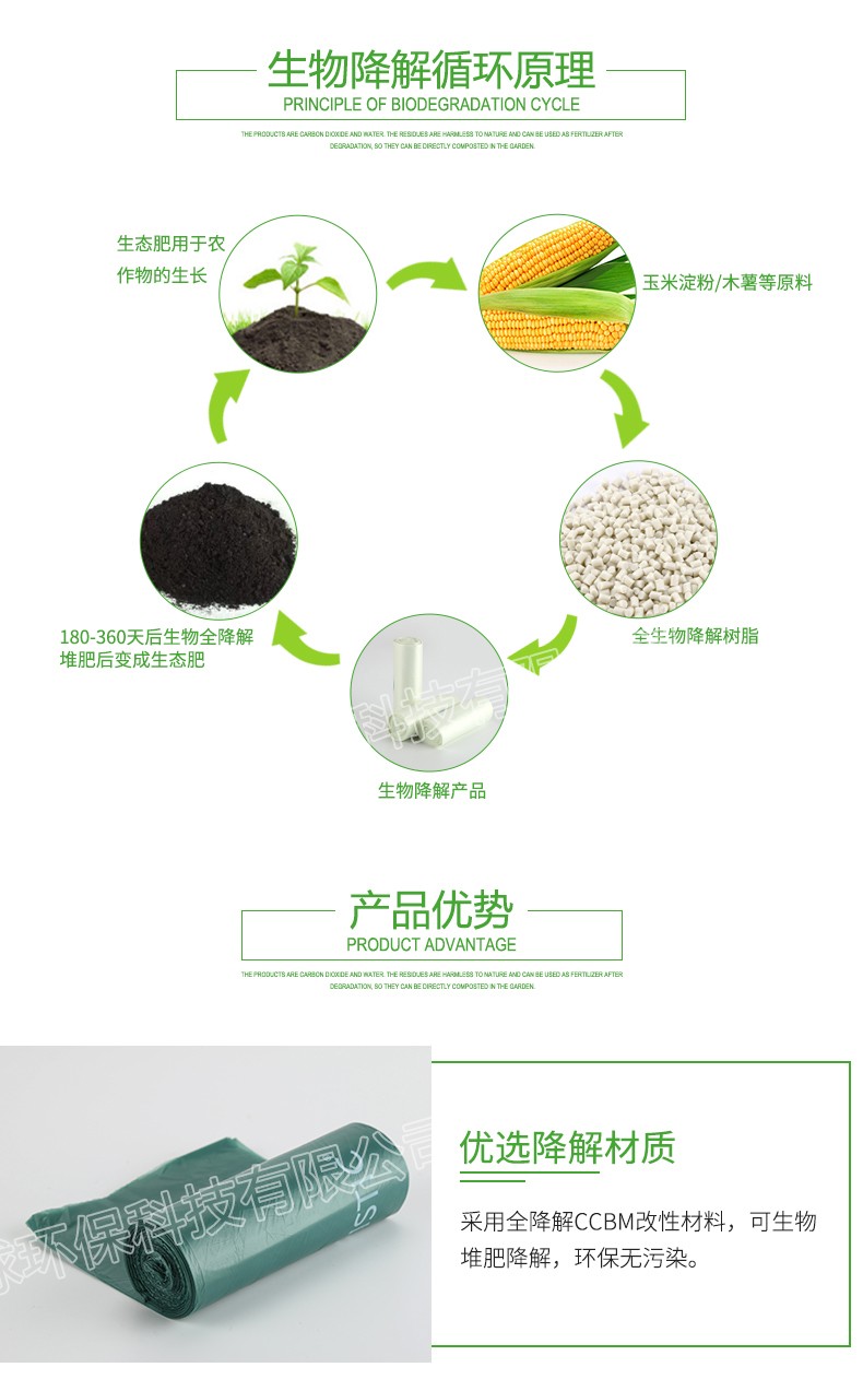 優(yōu)選降解材質(zhì):采用全降解CCBM改性材料,可生物堆肥降解,環(huán)保無污染。